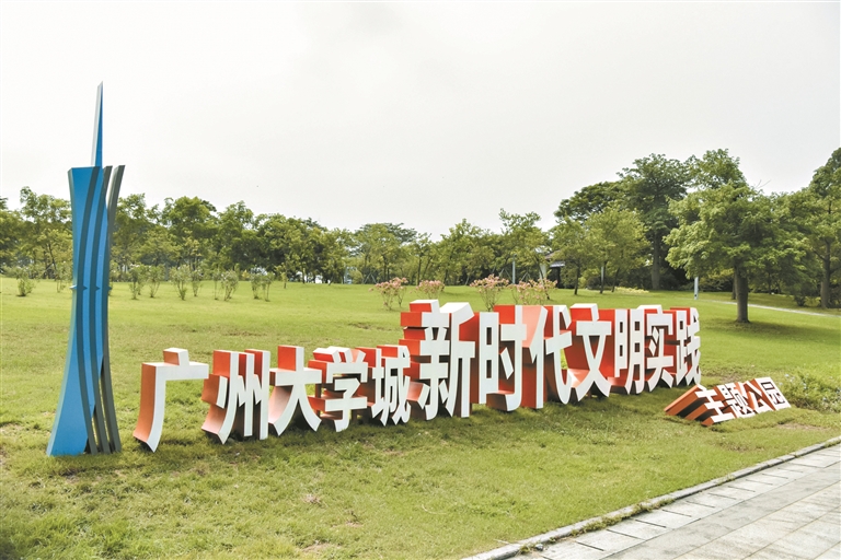 活动当天上午,广州大学城新时代文明实践主题公园揭牌。据悉,这是广州首个以新时代文明实践为核心的主题公园。公园坐落于番禺区小谷围岛核心区,沿中心湖铺展,以“一核两带三区”规划,串联14个景观点,“时代育人”“绿意动人”“以文化人”三大篇章层层递进,将生态绿岛化作文明课堂。