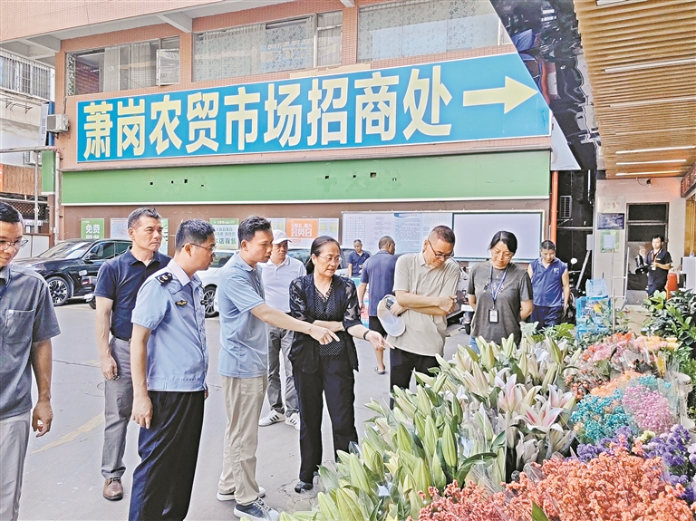 广州日报讯 (全媒体记者汤南 通讯员刘森荣、范淑玲摄影报道)“老板你好,这些水多久换一次呀?”在萧岗农贸市场的一处花档前,执法人员指着水培花卉问道。“四五天,有时一周。”听到档主回答,执法人员马上告知,当前是防控关键期,“每天彻底倒掉旧水,刷净瓶子盆底,重点冲洗富贵竹根上黏液,蚊卵最爱藏这里!您勤换水,花养得好,生意好,街坊和你的健康也有保障。”老板听了连连点头:“懂了!我这就换,以后当大事记着!”