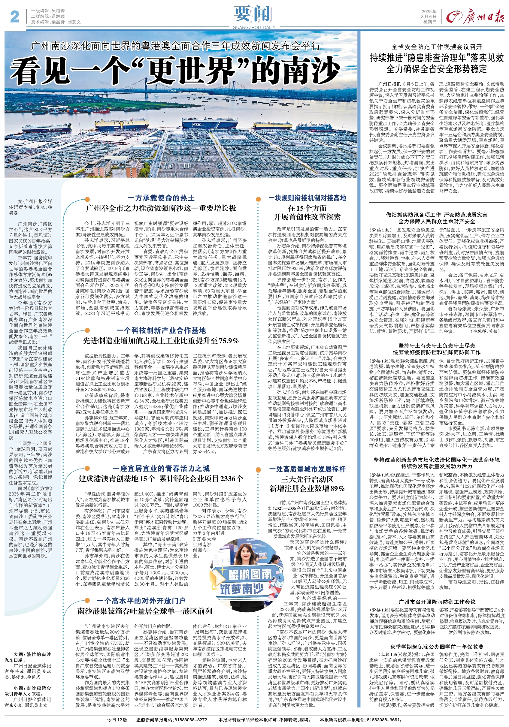 - 看见一个“更世界”的南沙 文/广州日报全媒体记者方晴、贾政、杨朝露 广州南沙,“湾区之心”,这片803平方公里的热土,既见证过国家民族的百年沧桑,又亲历着粤港澳大湾区崛起的时代盛景。 三年前,国务院印发《广州南沙深