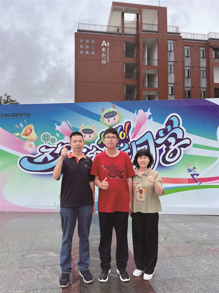8月5日,来自湛江的杜奇鸿成功注册为广州市交通运输职业学校新能源汽车运用与维修专业三二分段班的新生。据悉,他在湛江的中考分数为662分,折算为广州中考成绩约705分(备注:湛江中考总分760分,广州中考总分810分),这也成了今年广州中职通过省中招平台统一录取市外考生的最高分。他缘何走入职业教育赛道?对于未来有何规划?8月6日,在该校科教城校区,广州日报记者采访了杜奇鸿一家。