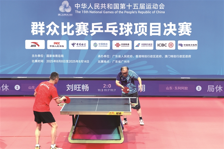 第十五届全国运动会群众比赛乒乓球项目决赛今天在广州天河体育中心体育馆响锣。9时30分,男团和女团小组赛打响。广东男队将在首个比赛日迎来一日双赛,在男团小组赛先后对阵四川男队与内蒙古男队。广东女队将在女团小组赛先后与上海女队和黑龙江女队交手。