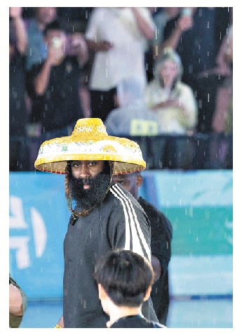随着球迷的欢呼声,哈登出现在场地中央。在球星赠礼互动环节,哈登收到了一顶水乡特色的疍家帽,该帽以竹篾编制而成,系带由香云纱制作而成,帽身遍刷光油,兼具防水、防晒、防虫蛀的性能。哈登对这一份礼物爱不释手,他说“一定要带回美国给朋友们看看”。