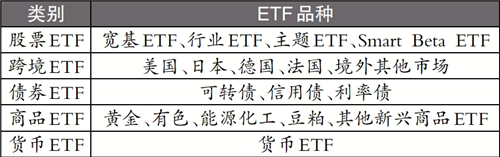风险程度从低到高分别为货币ETF、债券ETF、黄金ETF、股票ETF和跨境ETF。