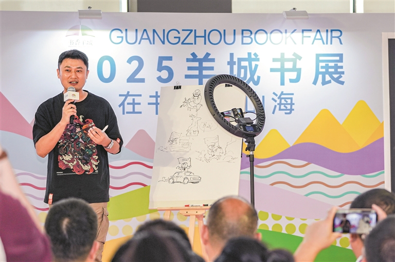“快来看混子哥!”“漫画里的广州太可爱了!”在人潮涌动的羊城书展主会场,很多学生早早等候在主舞台前,有的小学生用电话手表通知同伴快点过来——“混子哥”陈磊带领的混知团队携专门为广州创作的新书《半小时爱上广州》精彩亮相。