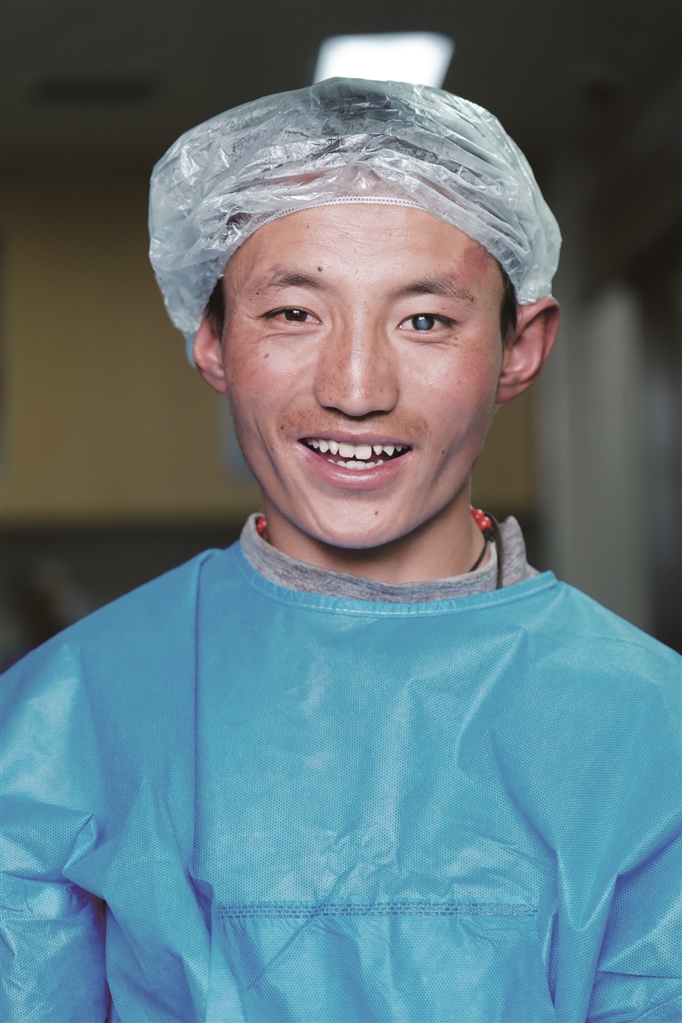 从2015年至今,一个令医疗队一直牵挂着的小男孩长大了。在医疗队驻扎的玉树八一医院里,他笑意盈盈,闪亮着明亮清澈的双眼。这名男孩的名字叫江才,因父母病逝,一直跟随着奶奶长大。2015年,9岁多的江才跟随奶奶上山挖虫草,双双被雷击中,奶奶倒下了,江才因雷击导致双目白内障失明。