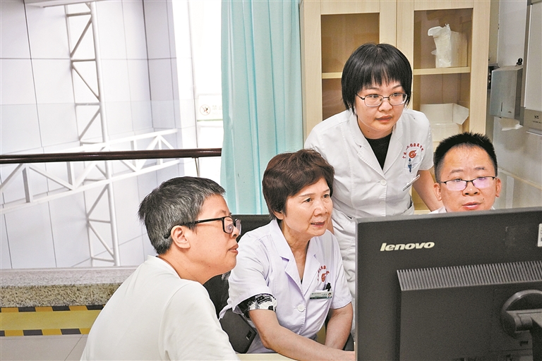 半小时问诊的背后,是卢振和教授深知慢性疼痛患者身心俱疲、求医不易;是她以患者为中心、与团队践行“对因治痛诊疗”——在红外热像仪前,这位七旬医者总是凝神分析人体“热力地图”,她的亲和与专注,无声地温暖了整个诊室。75岁的她,依然坚持着高强度的工作节奏:每周一、周三,到岗组织诊前讨论,8点半团队查房,9点门诊,12—13点科内学习研究,14点手术室现场指导。诊室里,她手把手指导年轻医生解读热像图,传授的不仅是技术,更是对生命的敬畏;手术台上,CT、超声引导精准穿刺技术,精准实施,只为更快更好地解除患者的痛苦。