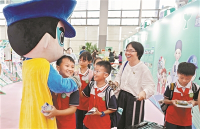 “哇,那个是清风侠耶!”学员们远远见到清风侠就欢呼不已,在清风侠和工作人员的带领下,大家在“清风侠·护苗”绿书签展区开启欢乐学习。在漫画天地遨游、在护苗知识墙学习、参与趣味游戏和有奖问答、体验漆扇和糖画非遗手作等环节都让学员们乐在其中。“这已是第3次带孩子参加清风侠主题的研学行,每次都有新玩法。”家长陈先生说。