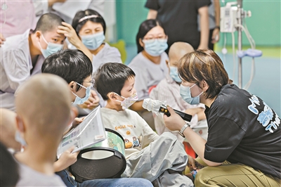 除了在特需儿童领域的尝试和探索,时静洁仍希望进一步探索音乐治疗在不同领域的应用。2014年,在少年宫牵头、广州市金丝带特殊儿童家长互助中心支持下,她进入中山大学附属第一医院儿科二科开展“病房中的音乐治疗”项目。这个项目运行至今,其间陆续有更多音乐治疗师及公益机构加入。