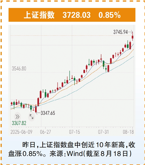 8月18日,A股三大指数相继刷新纪录,上证指数盘中创出自2015年8月21日以来新高,收盘涨0.85%报3728.03点;深证成指、创业板指均突破去年10月8日高点,收盘分别涨1.73%和2.84%;北证50同步创下历史新高。