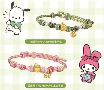 近年来,随着三丽鸥、蜡笔小新等潮玩动漫热门IP的流行,记者留意到,黄金首饰品牌纷纷推出各式各样的足金联名IP产品,被年轻消费者称为“黄金谷子”。时尚业内人士分析,年轻人在保值和热爱中发现新“爱好”——入手“黄金谷子”并发挥创意DIY饰品,这为消费市场注入消费新活力。