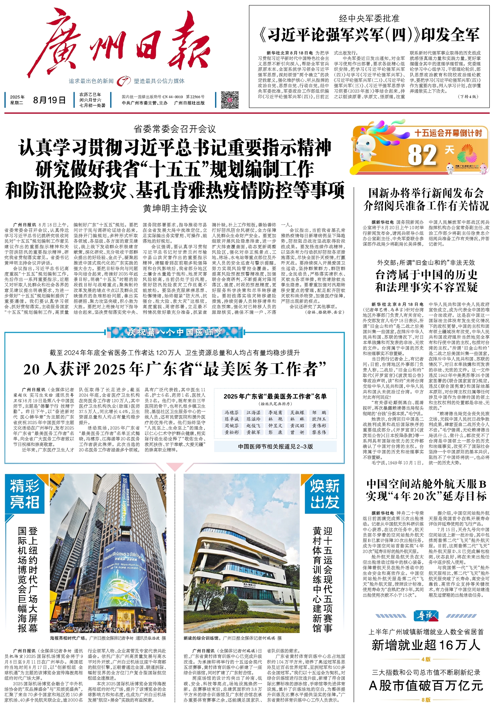 - 20人获评2025年广东省“最美医务工作者” 广州日报讯 (全媒体记者梁超仪 实习生宋晗 通讯员粤卫信)8月19日是第八个中国医师节,主题是“德馨于行 技精于勤”。昨日下午,以“奋进新时代 医心铸华章”为主题的广东省庆祝2025年中国医师节