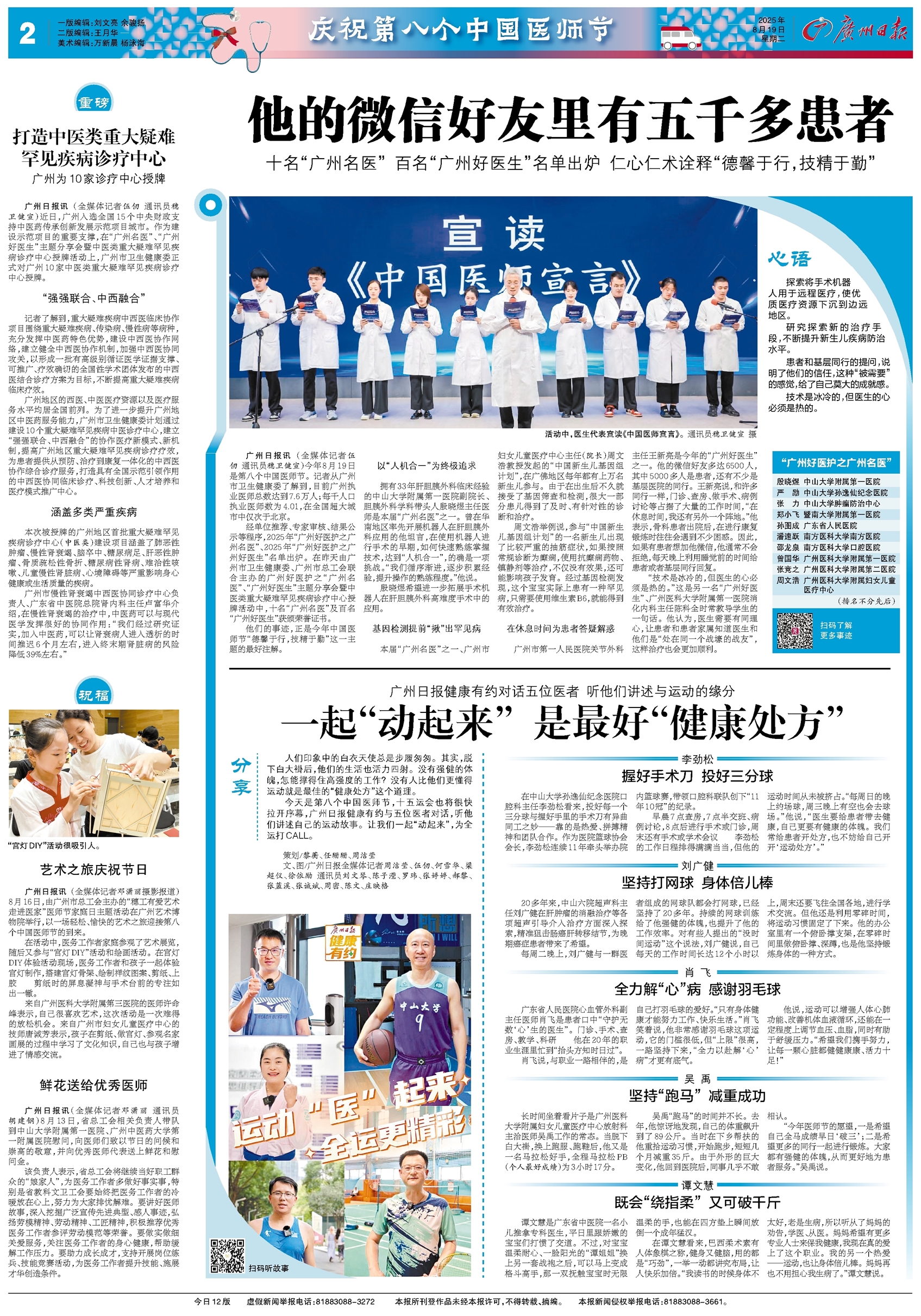 - 一起“动起来” 是最好“健康处方” 人们印象中的白衣天使总是步履匆匆。其实,脱下白大褂后,他们的生活也活力四射。没有强健的体魄,怎能撑得住高强度的工作?没有人比他们更懂得运动就是最佳的“健康处方”这个道理。 今天是第八个中国医师