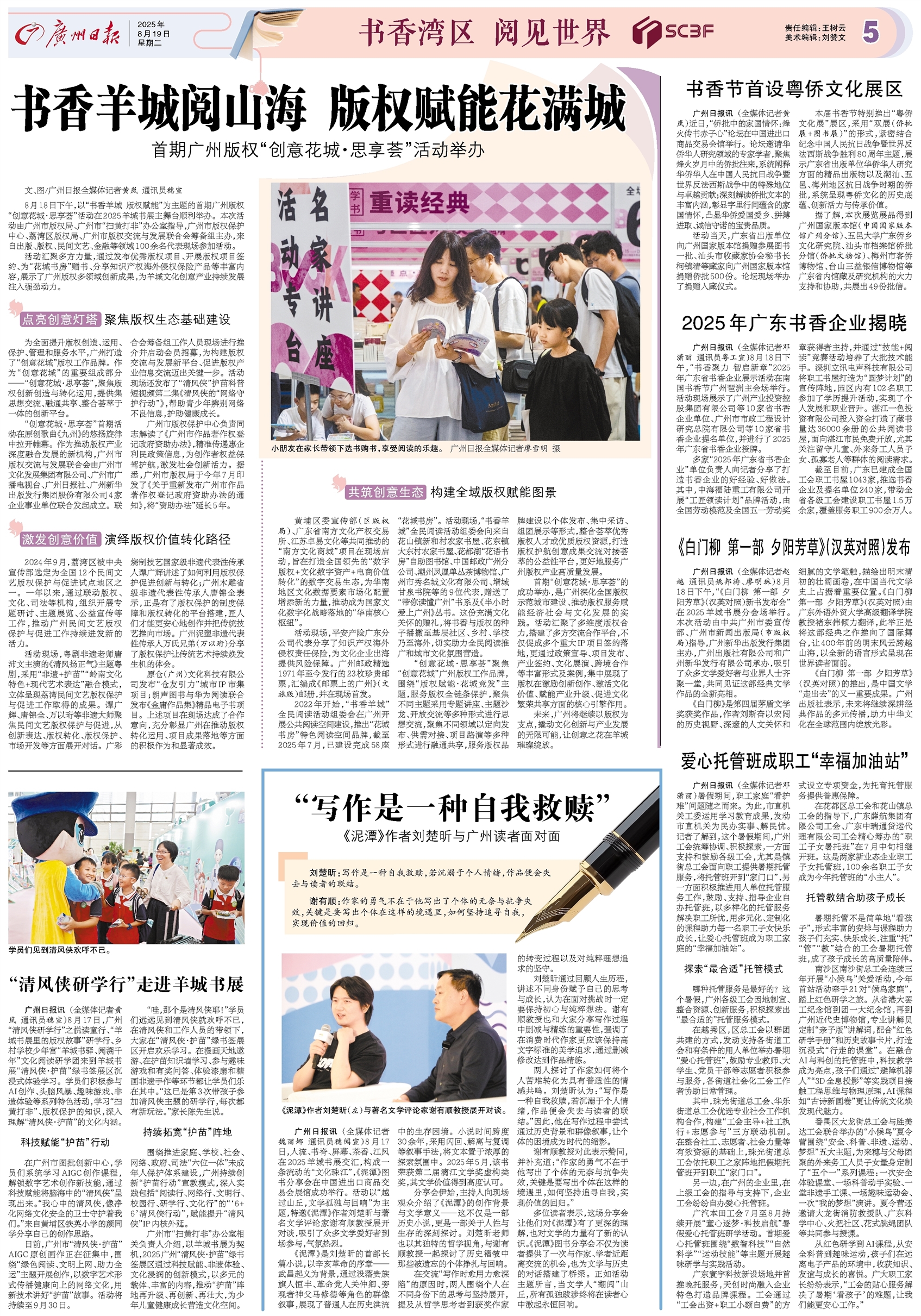 - “写作是一种自我救赎” 广州日报讯 (全媒体记者魏丽娜 通讯员穗阅宣)8月17日,人流、书脊、屏幕、茶香、江风在2025羊城书展交汇,构成一条流动的“文化珠江”,《泥潭》图书分享会在中国进出口商品交易会展馆成功举行。活动