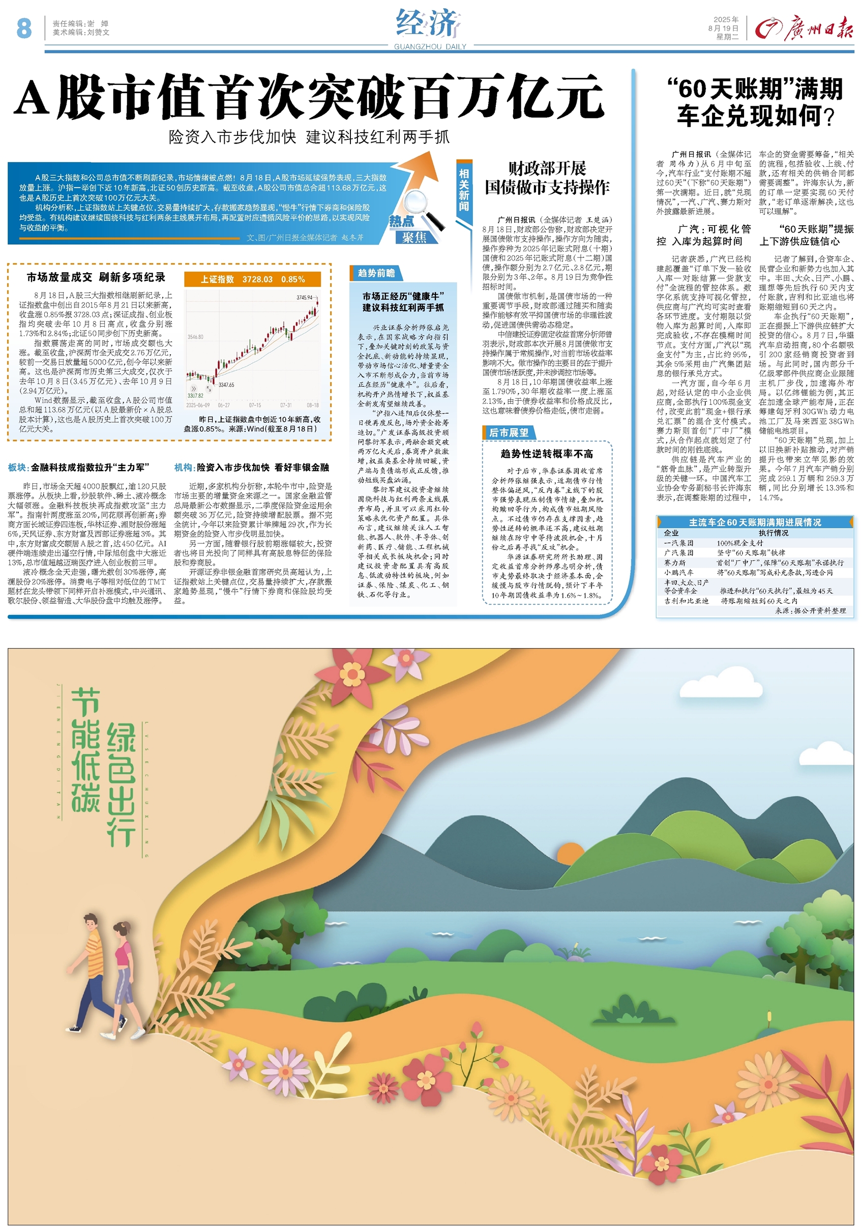 - A股市值首次突破百万亿元 热点聚焦 A股三大指数和公司总市值不断刷新纪录,市场情绪被点燃!8月18日,A股市场延续强势表现,三大指数放量上涨。沪指一举创下近10年新高,北证50创历史新高。截至收盘,A股公司市值总合