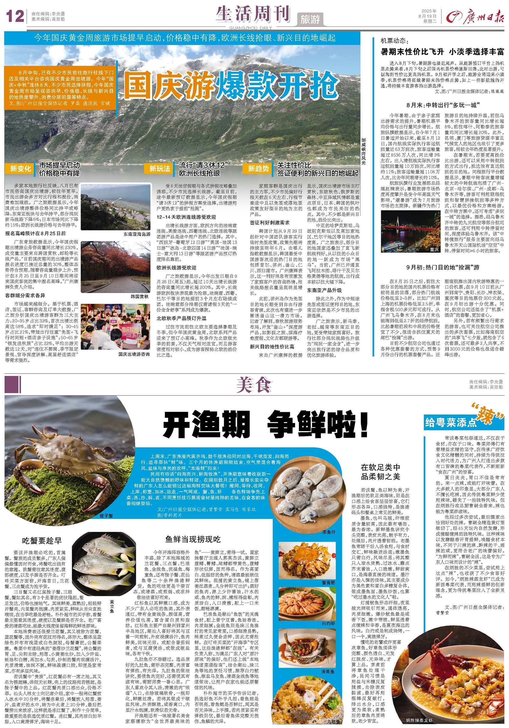 - 国庆游爆款开抢 8月中旬,已有不少市民前往旅行社线下门店及相关平台咨询国庆黄金周出境游。今年“国庆+中秋”连休8天,不少市民选择拼假,今年国庆黄金周市场呈现咨询早、价格稳、长线与新兴目的地热度攀升、消费分层明显等