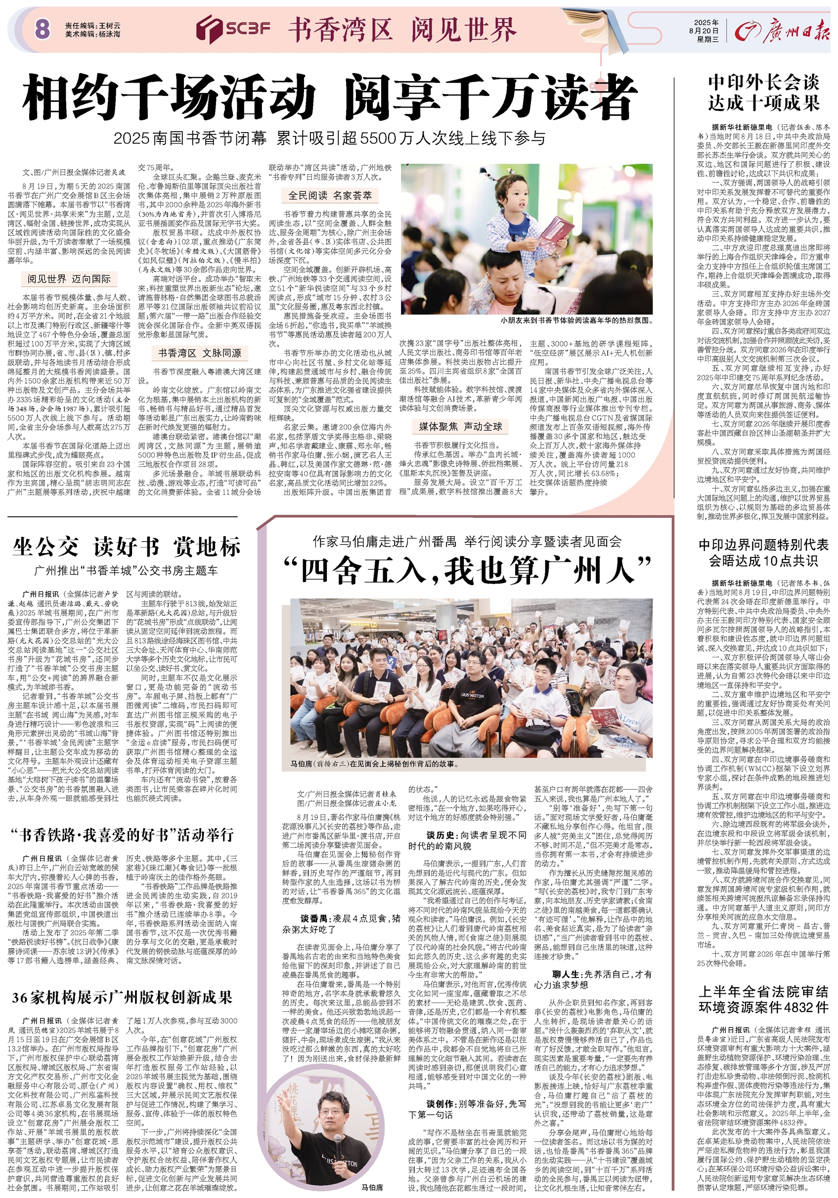 广州日报书香湾区 阅见世界 A8相约千场活动 阅享千万读者 吴波2025-08-20 2 2025年08月20日 星期三