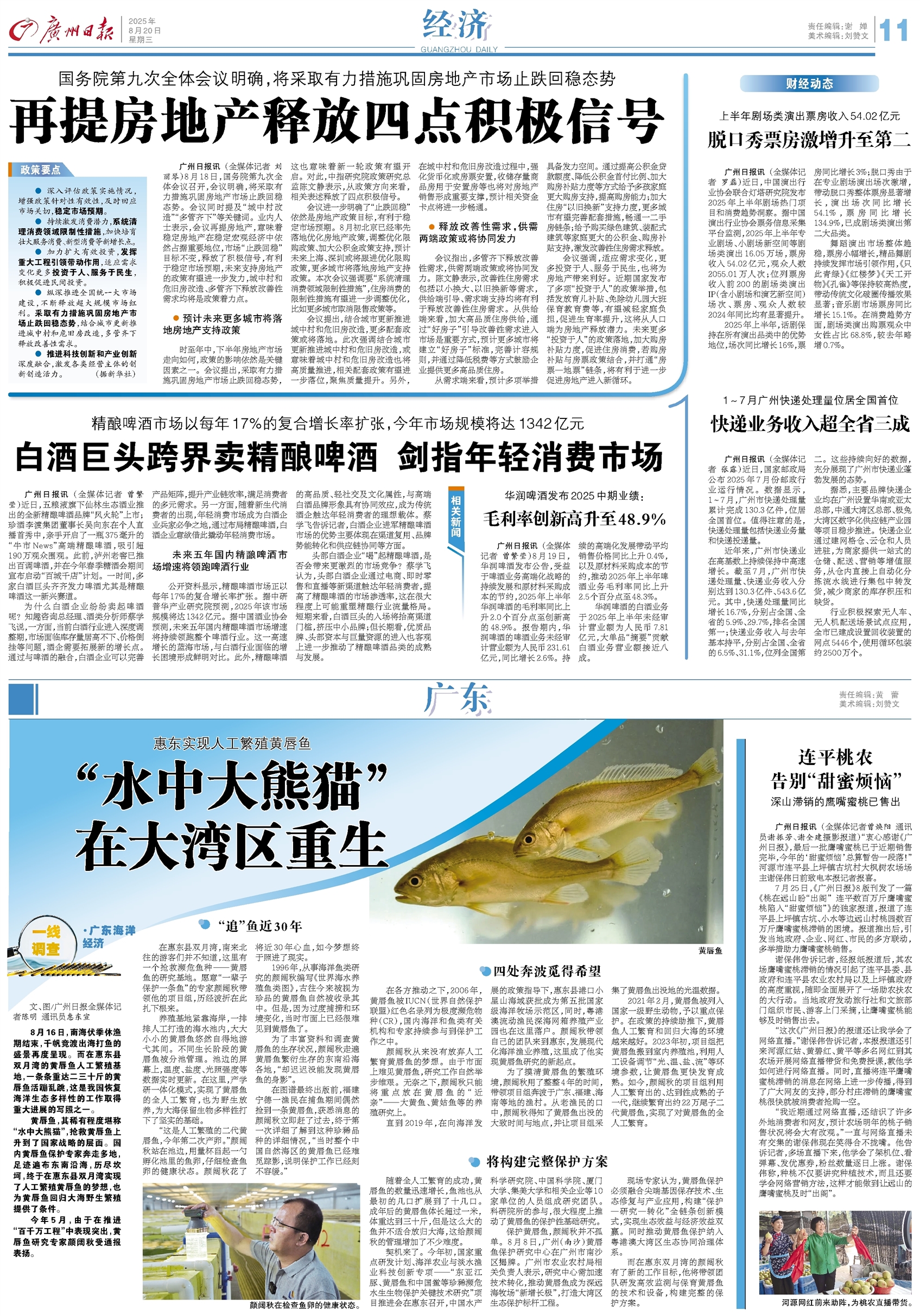 - “水中大熊猫”在大湾区重生 一线调查·广东海洋经济 文、图/广州日报全媒体记者陈明 通讯员惠东宣 8月16日,南海伏季休渔期结束,千帆竞渡出海打鱼的盛景再度呈现。而在惠东县双月湾的黄唇鱼人工繁殖基地,一条条重达二三十