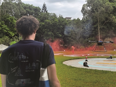 来自法国的政治与社会科学专业学生Esquerre Raphael在参观成至智能后,对无人机在应急救援领域的应用表现出浓厚兴趣。“无人机在火灾扑救和自然灾害中救援受困人员方面的功能令人印象深刻,特别是现场的大型无人机真的前所未见。”他说。