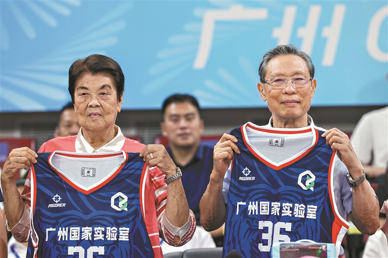 赛事亮点纷呈,彰显“科技+体育”创新融合。开幕式以科技感十足的表演拉开序幕:广州杂技团带来蒙特卡洛国际大奖作品《蹬球》,广州医科大学附属第一医院医护团队以舞蹈诠释“医学温度”。在“致敬科学·共叙情谊”环节,钟南山院士夫妇获赠定制球衣,象征科技与体育精神的交融。