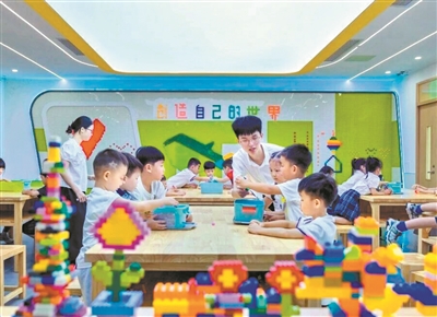 电钢琴课上,一双双稚嫩的手触碰琴键,弹奏出虽不连贯但充满欢乐的曲调;科学课上,孩子们在老师的引导下制作简易装置,感受“声音的振动力量”;乐高课堂上,五彩的积木在孩子们手中变成创意造型;心理课堂则通过趣味游戏,引导孩子们认识情绪,以积极的心态迎接小学新生活。