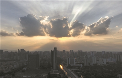 昨日傍晚,佛山再现夕阳美景,阳光在云层中迸发万丈金光,十分壮观。