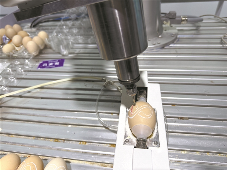 在现场,一款自适应机器人通过灵敏的力觉感知与先进的力控能力,能对鸡蛋壳等易碎、复杂的曲面进行精准雕刻。该展台的工作人员表示,这款自适应机器人已用于国内一些汽车品牌的整车组装与巡检工作,并跟家电企业有合作。