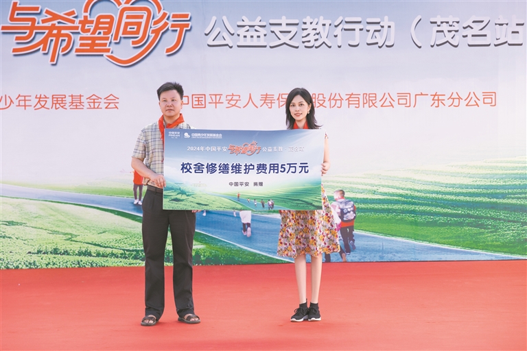 9月8日,“与希望同行”2025年中国平安公益支教行动(茂名站)启动仪式在茂名化州市东方红平安希望小学顺利举行。启动仪式上,中国平安捐赠5万元,用于校舍修缮维护。