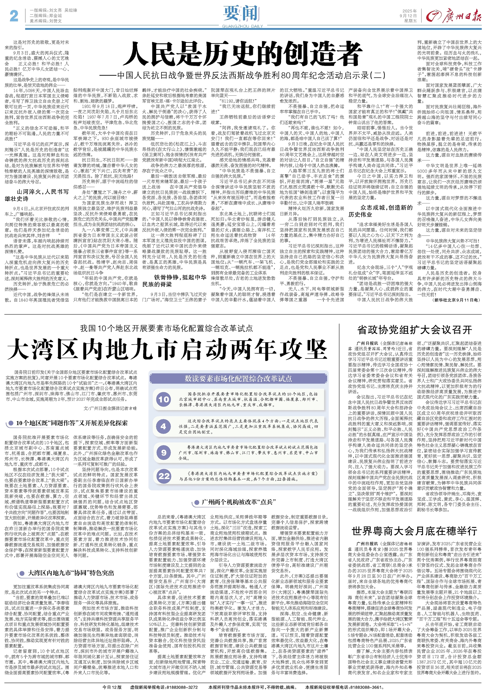 - 人民是历史的创造者 这是对历史的致敬,更是对未来的指引。 9月3日,盛大的阅兵仪式、隆重的纪念活动、震撼人心的文艺晚会……正义必胜!和平必胜!人民必胜!亿万中华儿女团结一心、豪情满怀。 这是战争史上的奇观,是