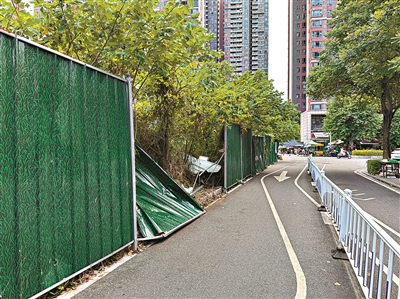 广州日报讯(全媒体记者周伟良摄影报道)近日有居民反映,增城区新塘镇翡莉花苑内有围蔽倒塌,10多天了都没人处理,存在安全隐患。情况究竟是怎样的?