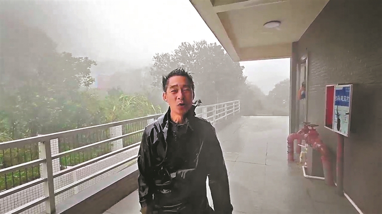 记者看到,梁兴文体形瘦小,在现场解说时,因风力过强人被吹到后退,身体摇摇摆摆,几次险些被风吹倒,但他坚持在强风中播报完毕后,才被同事拉回房间。