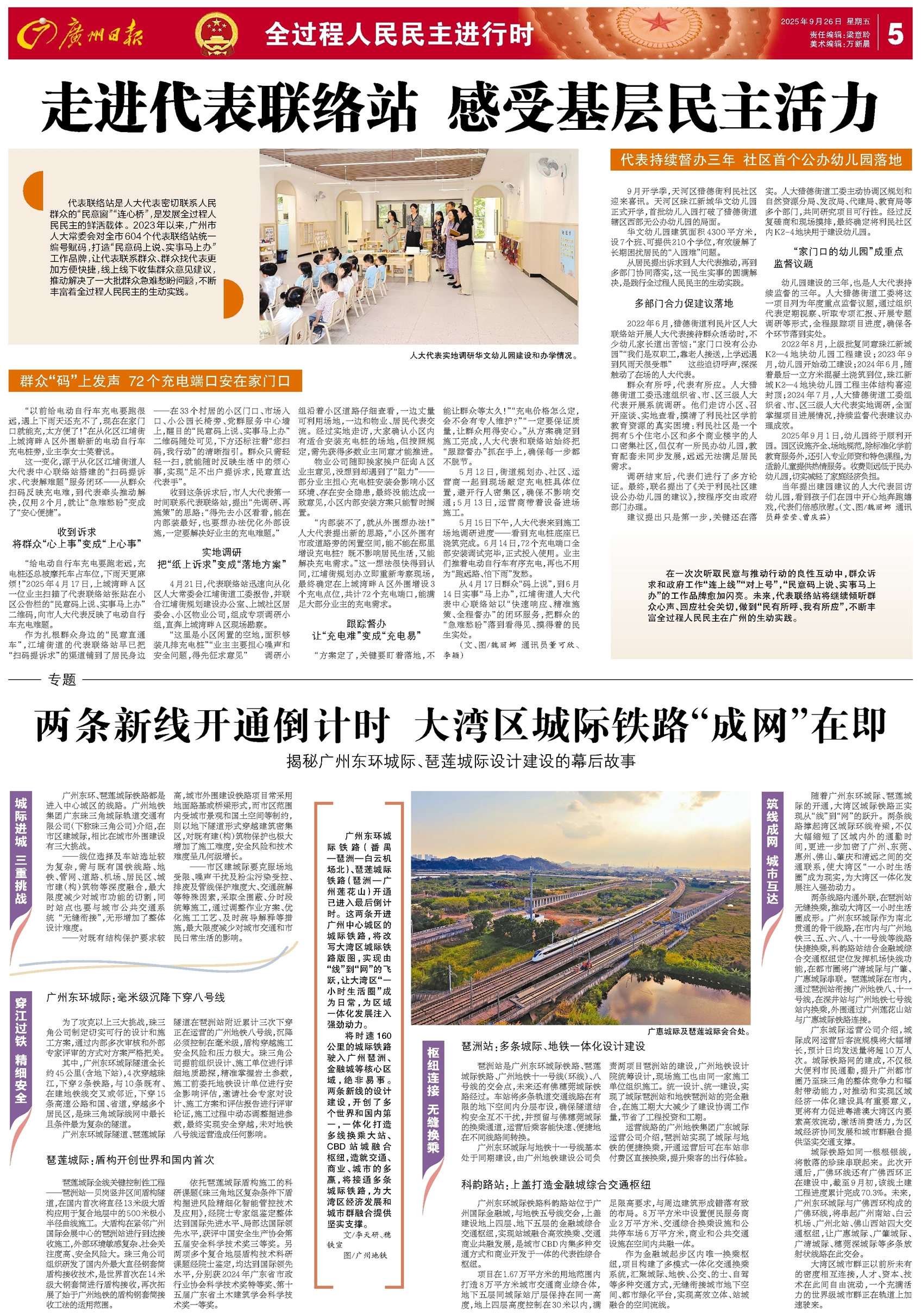 随着广州东环城际、琶莲城际的开通,大湾区城际铁路正实现从“线”到“网”的跃升。两条线路撑起湾区城际环线脊梁,不仅大幅缩短了区域内外的通勤时间,更进一步加密了广州、东莞、惠州、佛山、肇庆和清远之间的交通联系,使大湾区“一小时生活圈”成为现实,为大湾区一体化发展注入强劲动力。