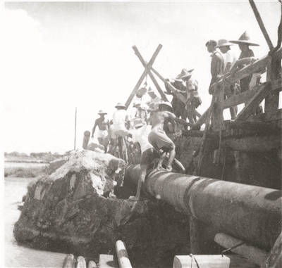 1950年4月,长堤五仙直街对开码头,一条直径150厘米、长700多米的水管缓缓沉入珠江,直通河南同庆路口,河南(今海珠区)第一次有了自来水。河南居民送了一面“饮水思源”的锦旗给政府。这四个字,道尽了人们对“自来水”的相思之苦以及对新生活的向往。