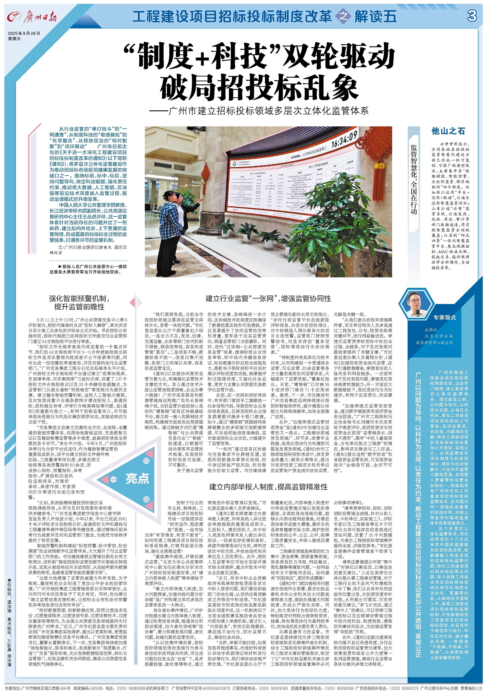 从行业监管的“单打独斗”到“一网通查”,从制度科技的“物理叠加”到“化学融合”,从预防惩治的“相对割裂”到“闭环联动”……广州市日前出台的《关于进一步深化工程建设项目招标投标制度改革的通知》(以下