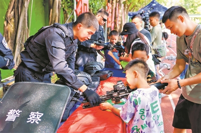这里“文武结合”:航天航空模型展览、现代武器装备模型展,让市民近距离感受科技强军的魅力;中小学校国防教育主题书画展,展现出青少年对国防事业的热爱与向往;国家安全典型案例宣传展,提升市民的国家安全意识。
