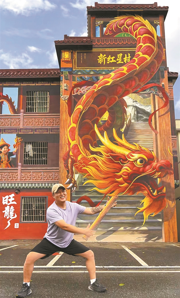 据了解,这幅总面积约200平方米的墙绘,团队前后耗费15天工期完成,从结构改造、色彩调配到细节绘制,每一步都兼顾艺术效果与建筑适配性。墙绘的热度还带动了周边消费,在附近北江大堤游玩的自驾游客慕名而来与大“旺龙”合影。“以前游客来村里逛一圈就走,现在能停留大半天,这就是墙绘带来的‘留客力’。”当地村民说。