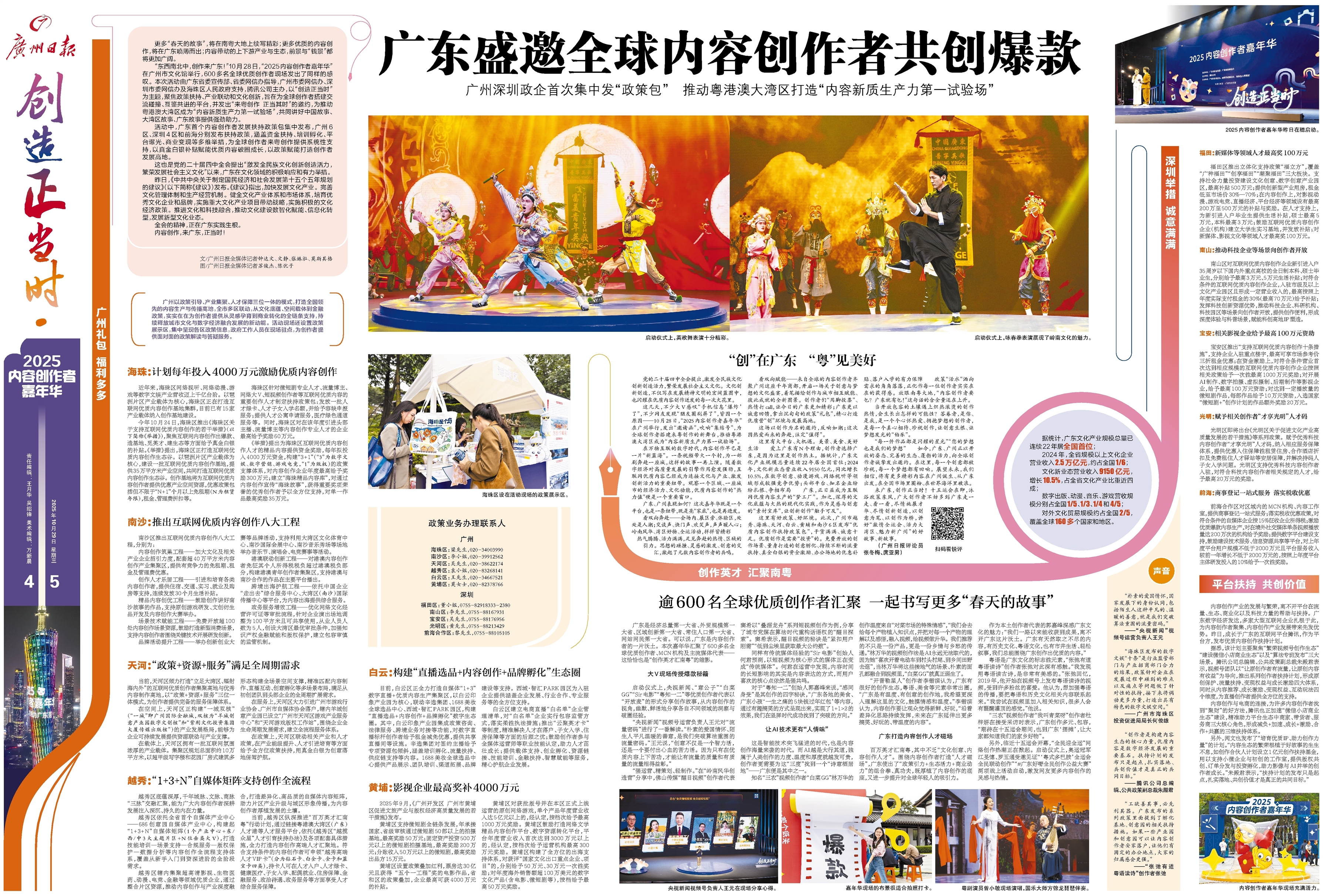- 广东盛邀全球内容创作者共创爆款 更多“春天的故事”,将在南粤大地上续写精彩;更多优质的内容创作,将在广东喷薄而出;内容带动的上下游产业与生态,前景与“钱景”都将更加广阔。 “东西南北中,创作来广东!”10月28日,“2025