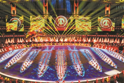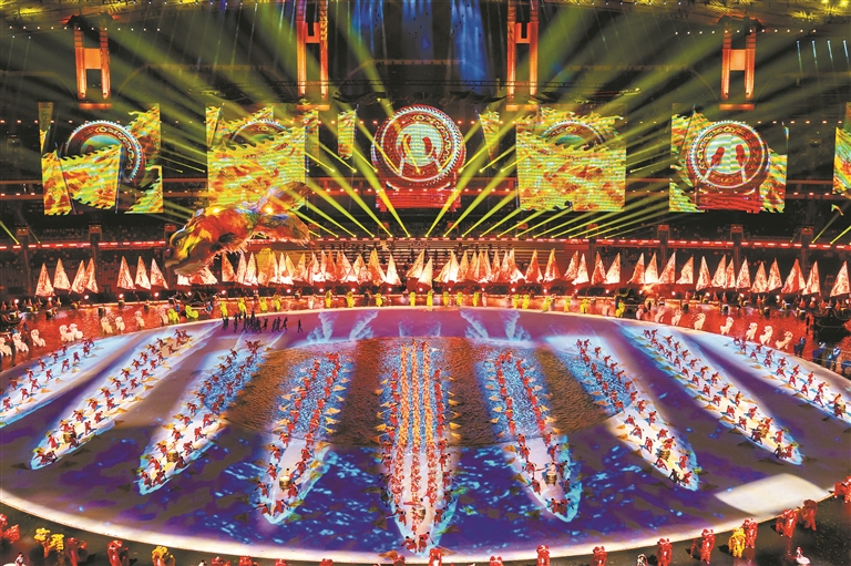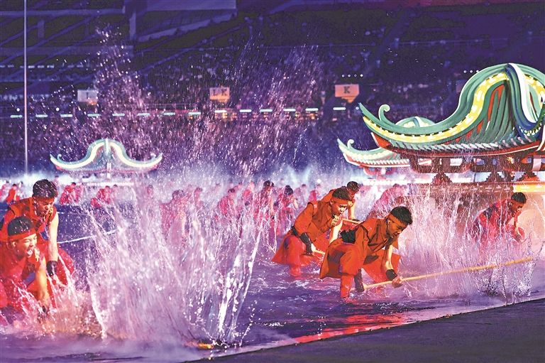开幕式将传统岭南文化与前沿科技深度融合。醒狮表演与AIGC、VR技术相互交融,英歌锣鼓搭配全息投影,龙舟竞渡场景通过AR技术“划”入观众席。除了粤剧、咏春、麒麟等广为人知的传统元素外,广绣的精美纹样、广珐琅的流光溢彩、嵌瓷的立体拼贴等散落在民间的文化符号,经过创新设计后焕发新意,在开幕式舞台上惊艳亮相。总撰稿乔卫表示:“开幕式以文学化的叙事,将散落的岭南符号编织成‘圆梦’故事,展现粤港澳大湾区人民对美好生活的共同追求。”