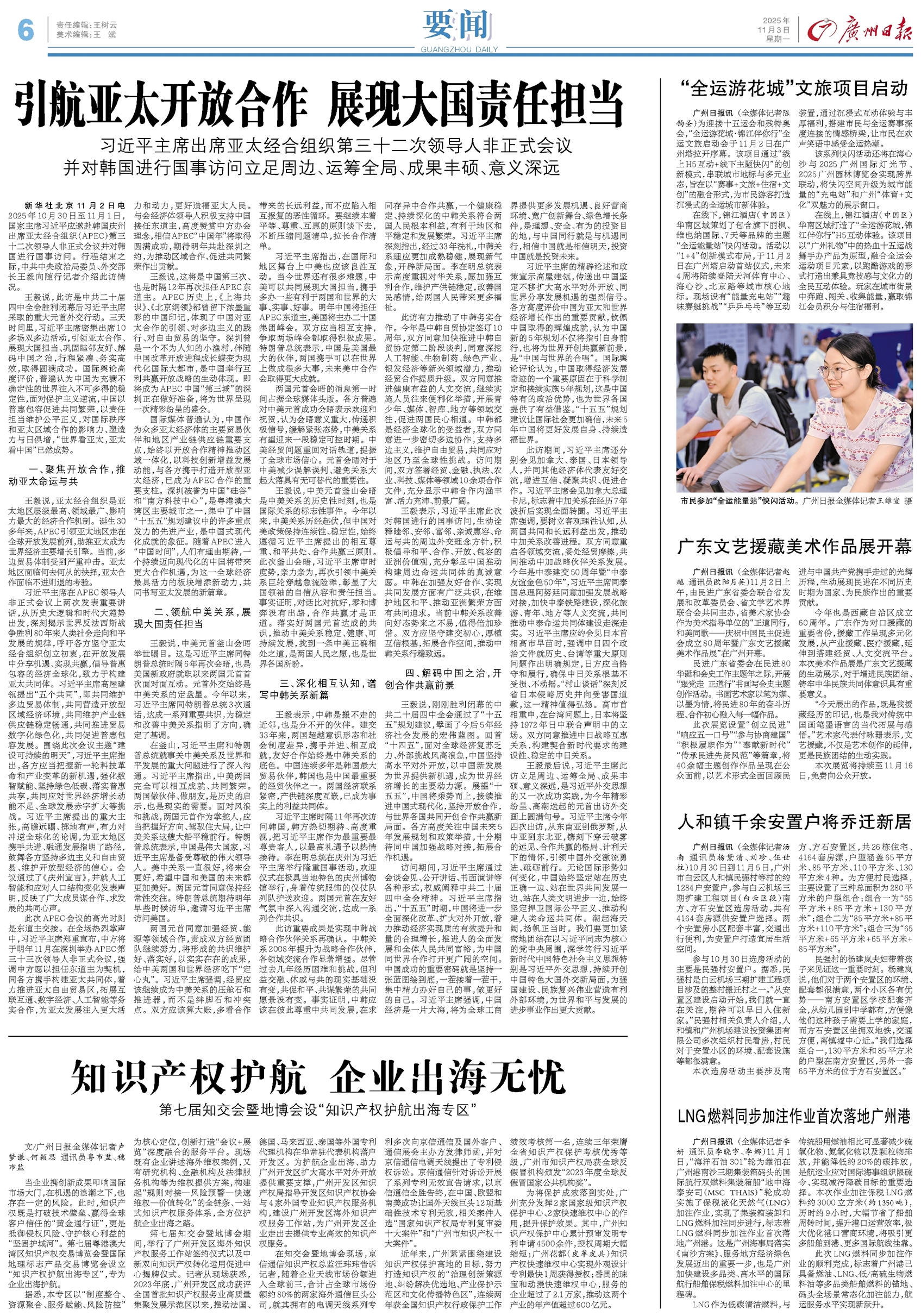- “全运游花城”文旅项目启动 广州日报讯 (全媒体记者陈钧圣)为迎接十五运会和残特奥会,“全运游花城·锦江伴你行”全运文旅启动会于11月2日在广州塔拉开序幕。该项目通过“线上H5互动+线下主题快闪”的创新模式,串联城市地标与多