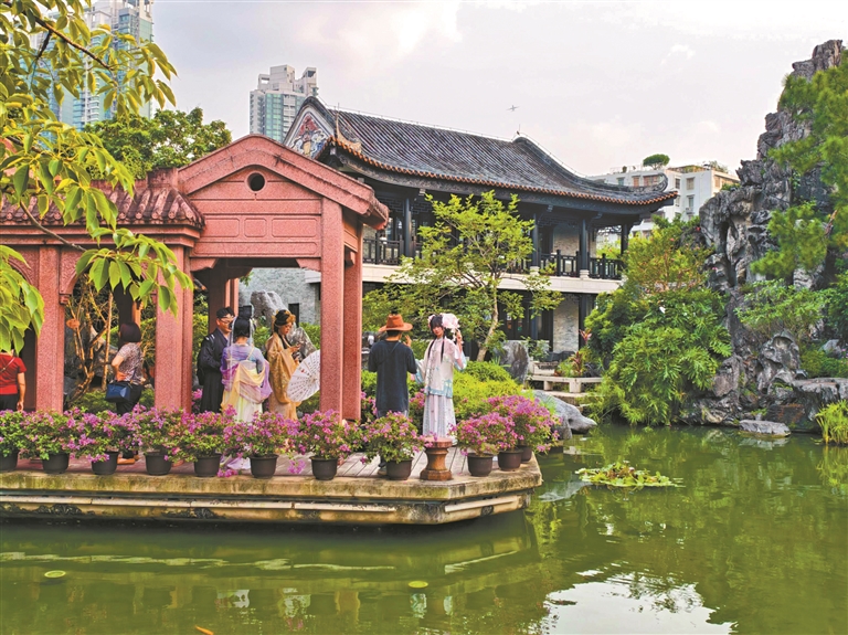 大榕树下,听蝉鸣饮汽水,谈天说地,是广州人的“松弛感”。荔枝湾涌边,滨水空间“变身”,搭起开放台阶和景观装置。市民坐在桥头的大台阶上,手边一杯柠檬茶,迎面秋风送爽,偷得浮生半日闲。截至目前,广州已打造二沙岛、花城广场、永庆坊等100个可“席地而坐”的环境卫生精品示范区,“松弛感”就在身边。