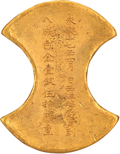 湖北省博物馆中,收藏着一件明星文物——明梁庄王墓出土的金锭。它正面铸有“永乐十七年四月□日西洋等处买到/八成色金壹锭伍拾两重”铭文。永乐十七年是1419年,正是郑和第五次下西洋归来之时,可知它是郑和船队于返回途中用在西洋所买的一批黄金制作的。十五世纪初,郑和七次下西洋必经岭南,还开辟了经广东至厄加勒斯角的航线,是唐宋以来中国海上航行发展到顶点的表现。