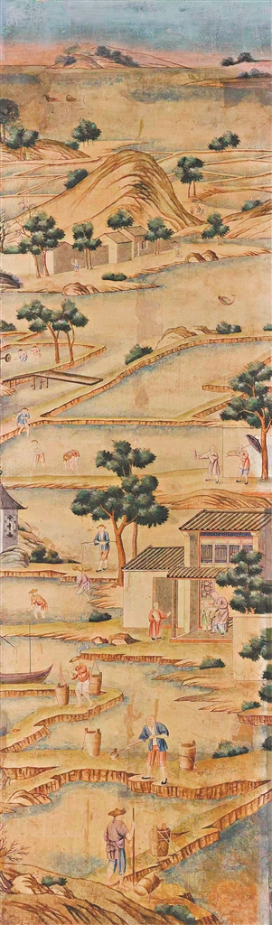 广州、澳门的长期开放,令众多外国商人、船员、传教士、旅行家、艺术家、科学家聚集于此。不少人对古老的东方文化充满好奇心,通过书信向本国介绍“中国印象”,把《史记》等中国经典古籍译介到西方,推动了欧美的汉学研究。自17世纪起,受到中国外销工艺品和饮茶等习俗的影响,欧洲逐渐兴起一股持续近两百年的“中国风”,波及手工艺、绘画、建筑、园艺以及生活方式等诸多领域。广东省博物馆中收藏着一组现存最大的广州外销壁纸,就是英国拉塞尔斯家族的小亨利在18世纪40年代从广州购买的,用于该家族建造的哈伍德庄园墙壁装饰。12件壁纸有超过250个人物、50余组生产生活场景,拼起来是一组完整的反映水乡稻作、茶叶贸易的广州风土人情写实画。