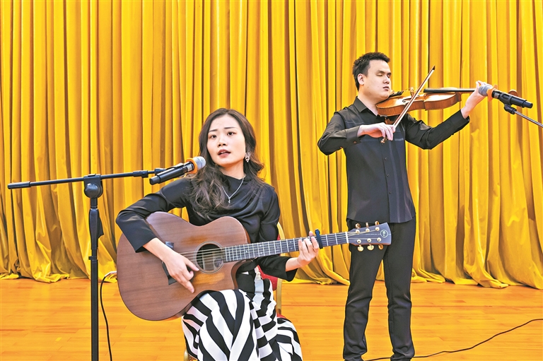 “有人放烟花,有人追晚风,借一缕时光……”歌曲《世界赠予我的》一开头,现场观众瞬间就被视障歌手江晓茵婉转深情的歌声击中,随即悠扬美妙的中提琴声在视障音乐家王子安的肩上流出,更加令人沉醉。