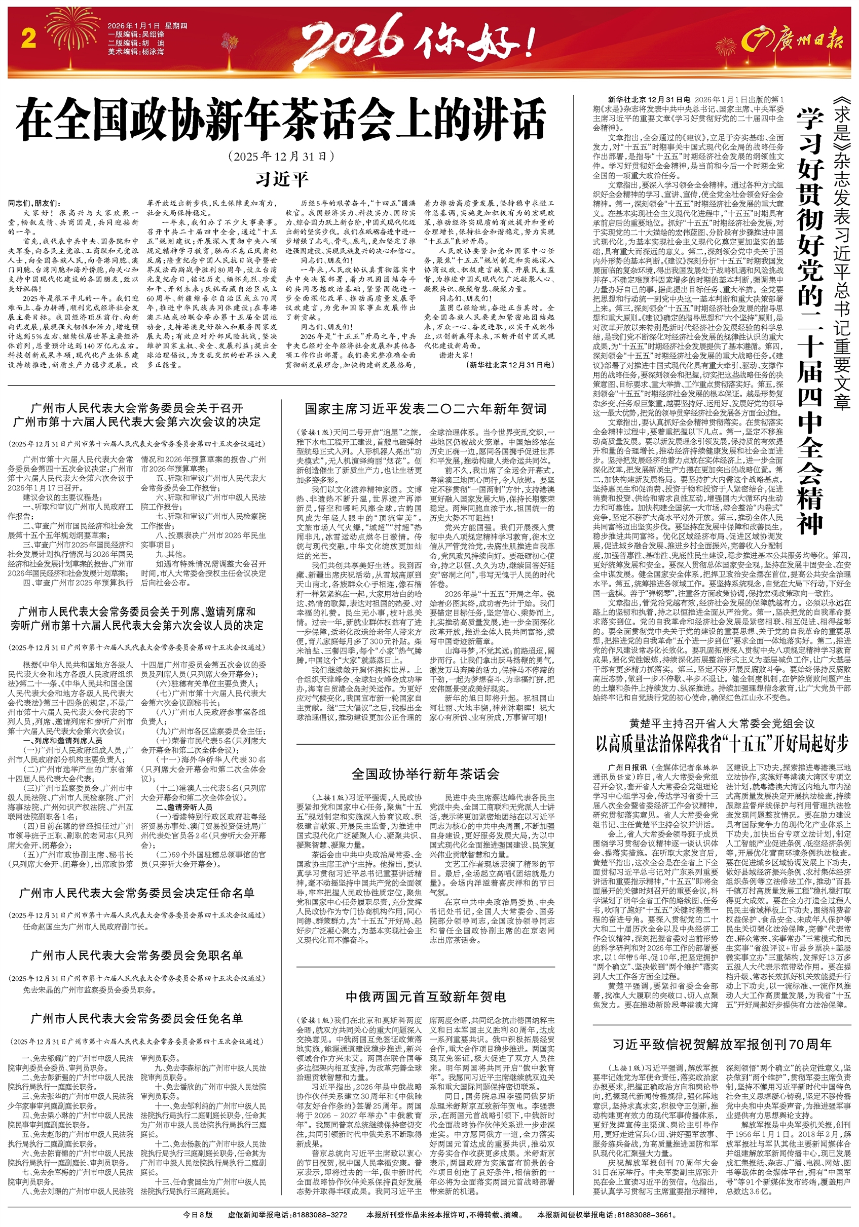 广州市第十六届人民代表大会常务委员会第四十五次会议决定:广州市第十六届人民代表大会第六次会议于2026年1月17日召开。
