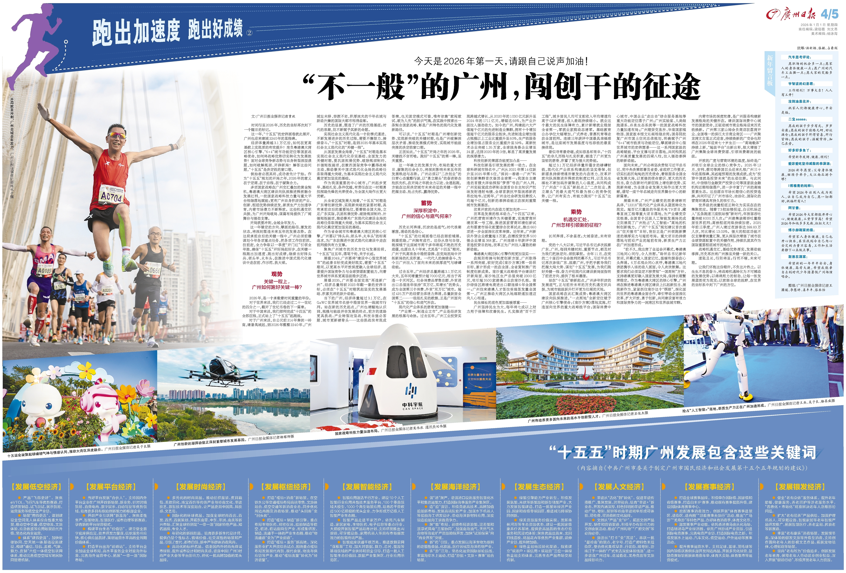 - “不一般”的广州,闯创干的征途 文/广州日报全媒体记者贾政 统筹/汤新颖、张毓、占豪剑 时间行至2026年,历史的坐标再次刻下一个醒目的标记。 这一年,“十五五”的宏伟画卷就此展开,广州也迎来建城2240年的里程碑。