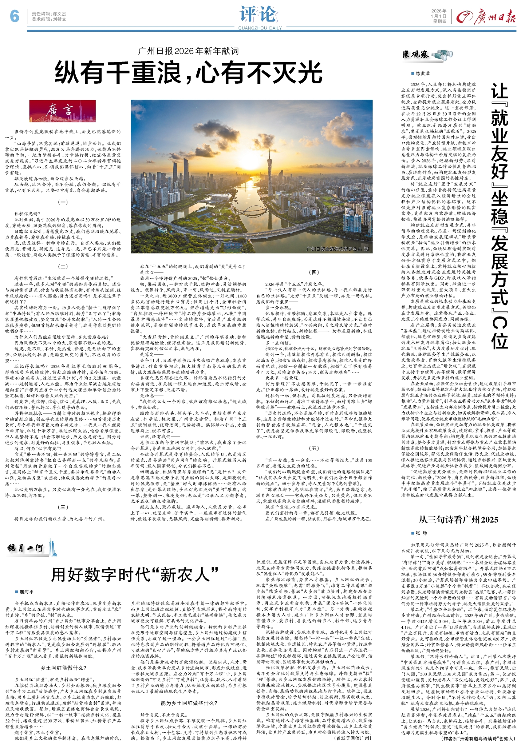 - 从三句诗看广州2025 如果用几句诗词来总结广州的2025年,你会想到什么呢?要我说,以下几句尤为贴切。 第一句,“看似寻常最奇崛”,说的就是全运会。“开幕式‘冇得弹’!”“湾区美学,靓到绝!”……本届全运会堪称零差