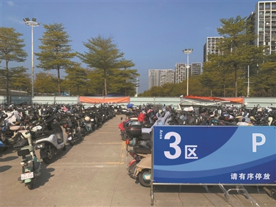 记者看到,这里还设有大型电动自行车免费停车场,场内有清晰的指示牌和标志,引导车辆进场停放。值得一提的是,场内停车全凭车主自觉,很多车主会自觉沿着停放区域,依次有序将车辆停放好。根据指引,停车场停满后,车主可在停车场周边划定的停车区域停放。