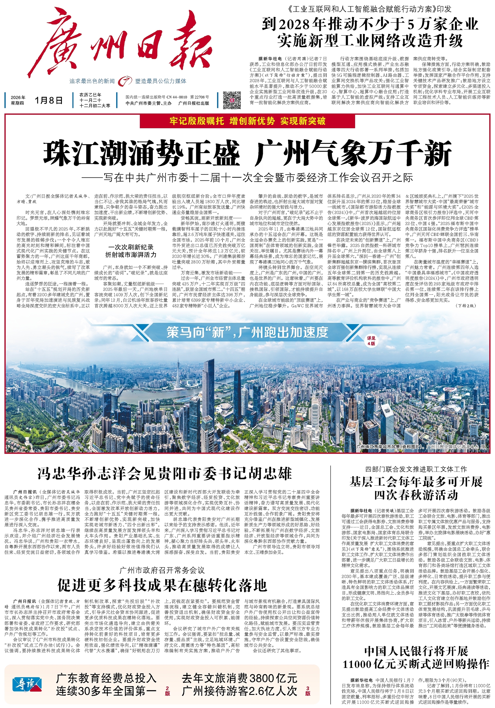 - 珠江潮涌势正盛 广州气象万千新 文/广州日报全媒体记者吴城华、方晴、贾政 时光无言,在人心深处镌刻难忘印记。梦想无垠,照耀气象万千的岭南大地。 回望极不平凡的2025年,不断跳动的数字、持续刷新的排名,见证着城市发展的铿