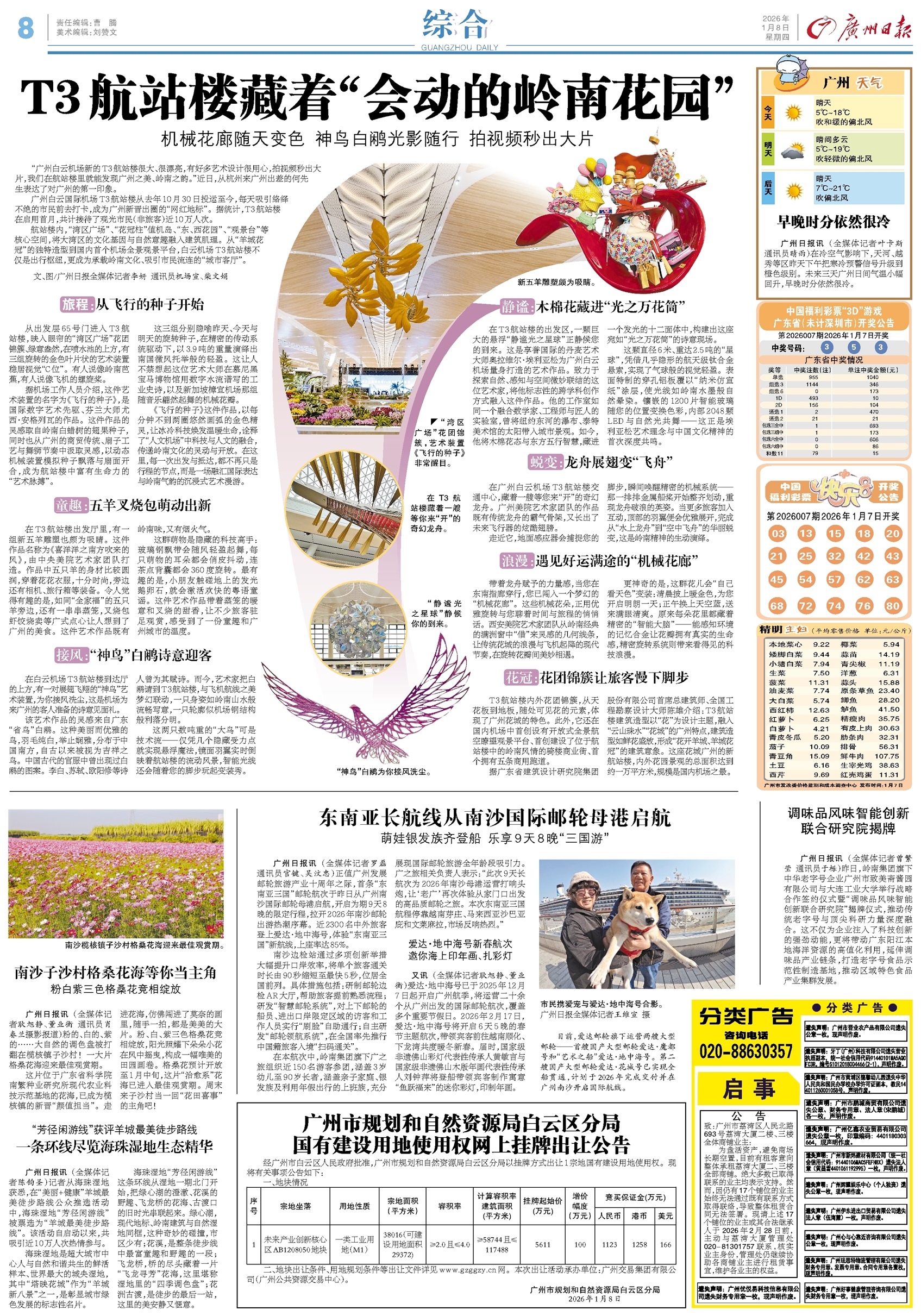- T3航站楼藏着“会动的岭南花园” “广州白云机场新的T3航站楼很大、很漂亮,有好多艺术设计很用心,拍视频秒出大片,我们在航站楼里就能发现广州之美、岭南之韵。”近日,从杭州来广州出差的何先生表达了对广州的第一印象。 广州白云国际