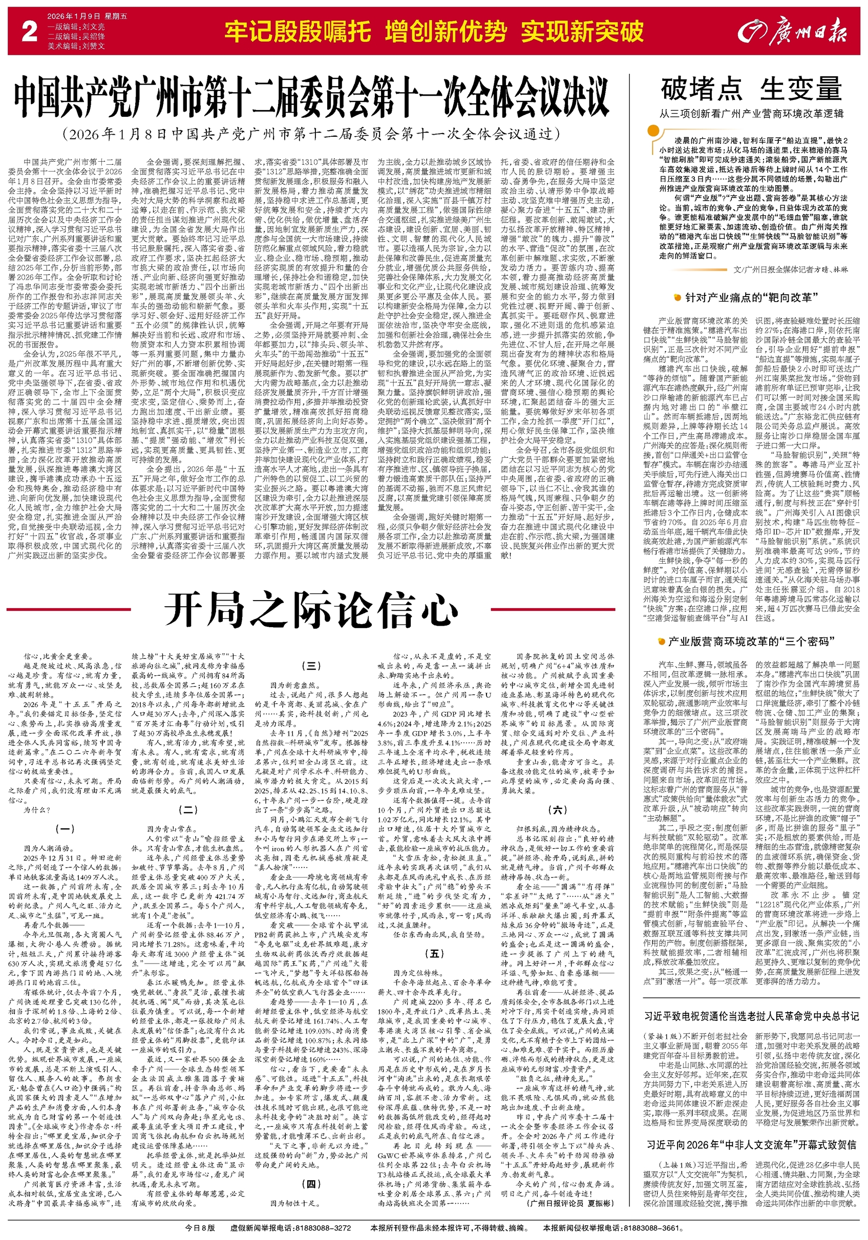 - 中国共产党广州市第十二届委员会第十一次全体会议决议 中国共产党广州市第十二届委员会第十一次全体会议于2026年1月8日召开。全会由市委常委会主持。全会坚持以习近平新时代中国特色社会主义思想为指导,全面贯彻落实党的二十大和二十届历次全会以及中央经济工