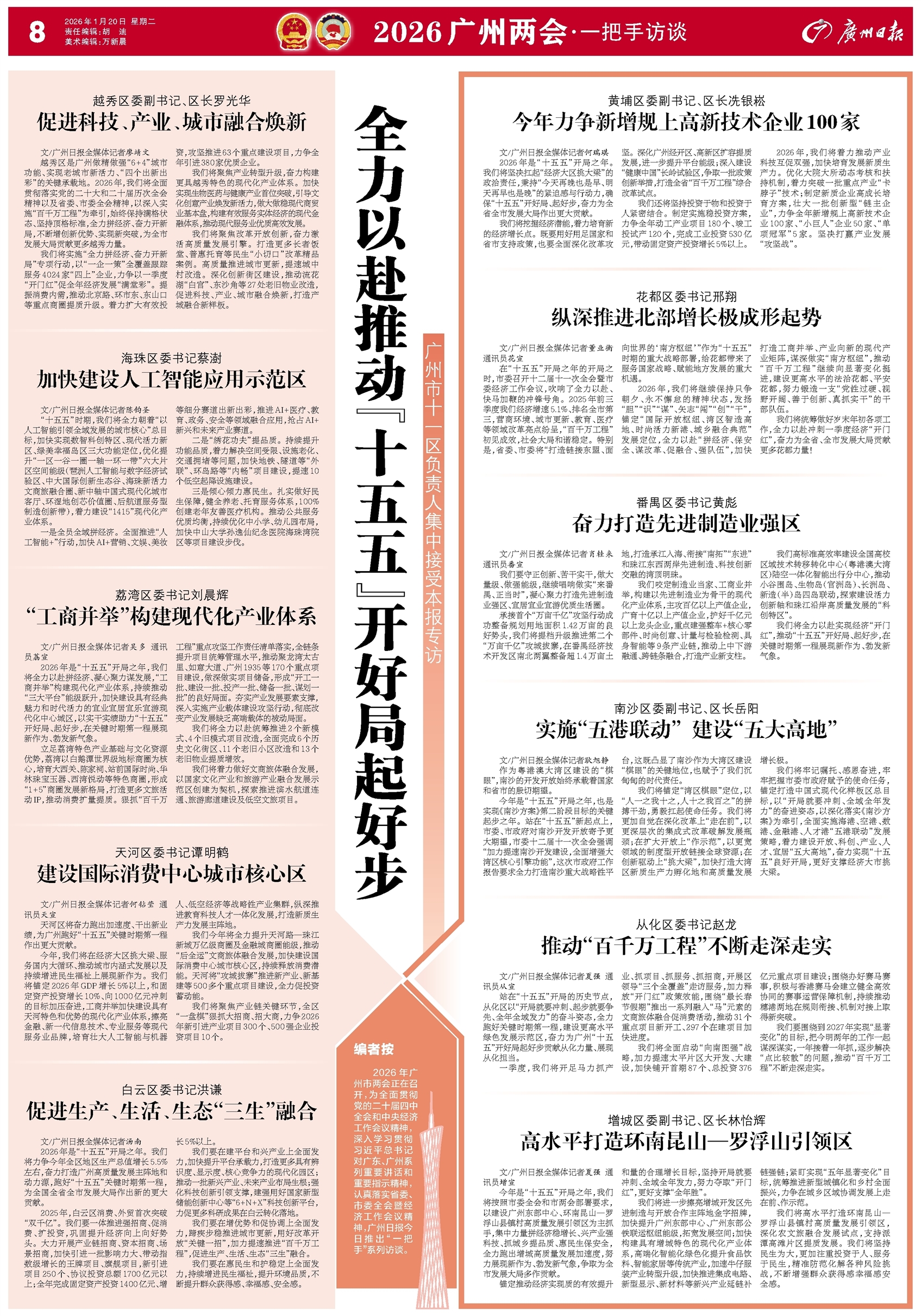 编者按 2026年广州市两会正在召开,为全面贯彻党的二十届四中全会和中央经济工作会议精神,深入学习贯彻习近平总书记对广东、广州系列重要讲话和重要指示精神,认真落实省委、市委全会暨经济工作会议精